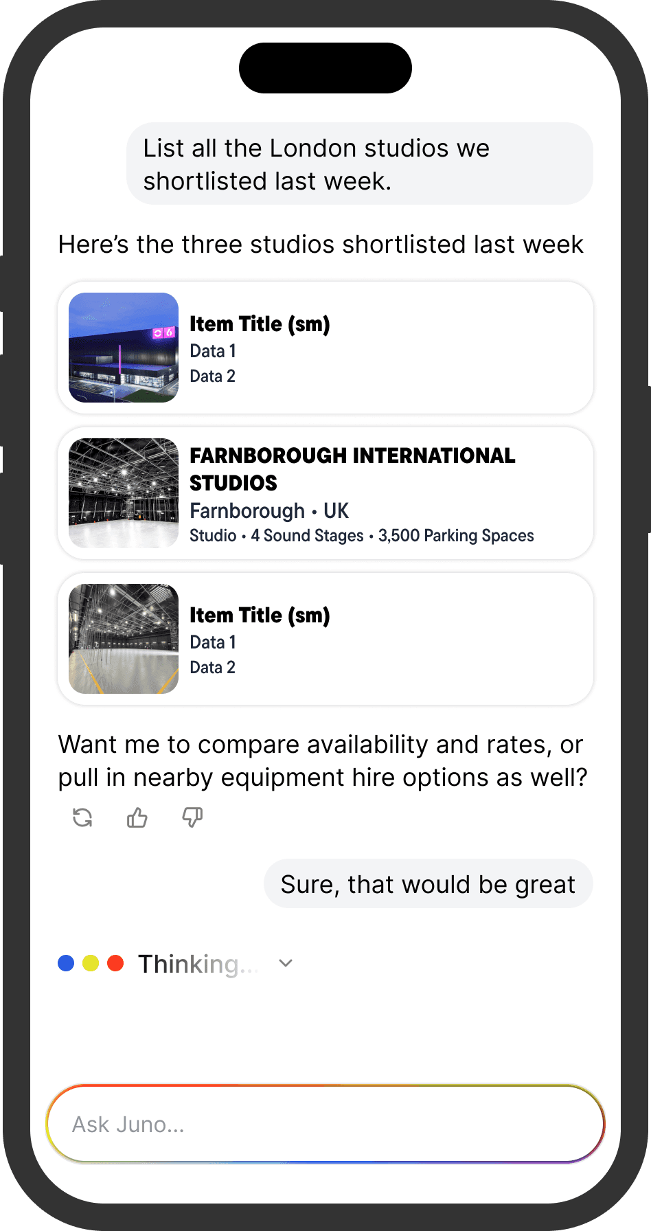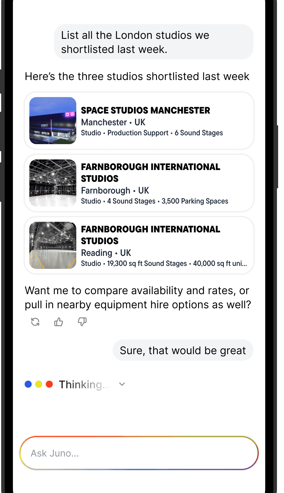 Under the hood, Juno — Pocket Films' AI engine — connects your profile to live production demand. It reads what productions need and surfaces the right providers at the right moment — not based on keywords, but on context.